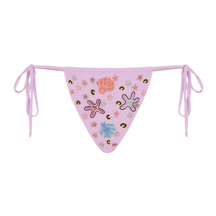 • Fia Tropical Hand Embroidered Bikini Bottoms Lilac