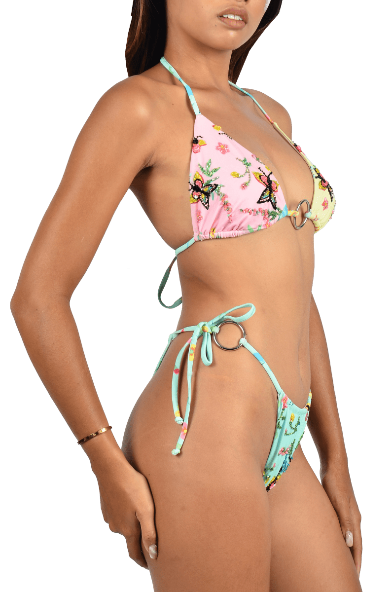 Bring playful vibrance to your swimwear with the Kehlani Bikini Bottom. Showcasing an exclusive Oceanus multi-colour print, this piece is crafted from premium Italian swim fabric and adorned with hand-beaded accents for a signature touch of artistry. The classic tie-side design allows for an adjustable, flattering fit, while the fully lined construction ensures comfort and confidence by the water.