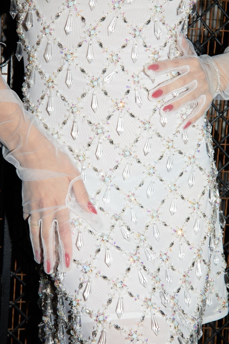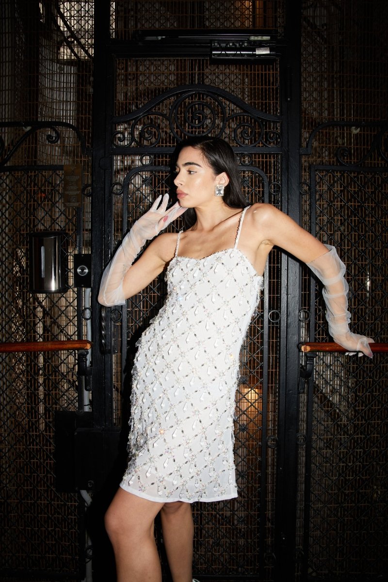 Arabella Hand Beaded Crystal Dress White