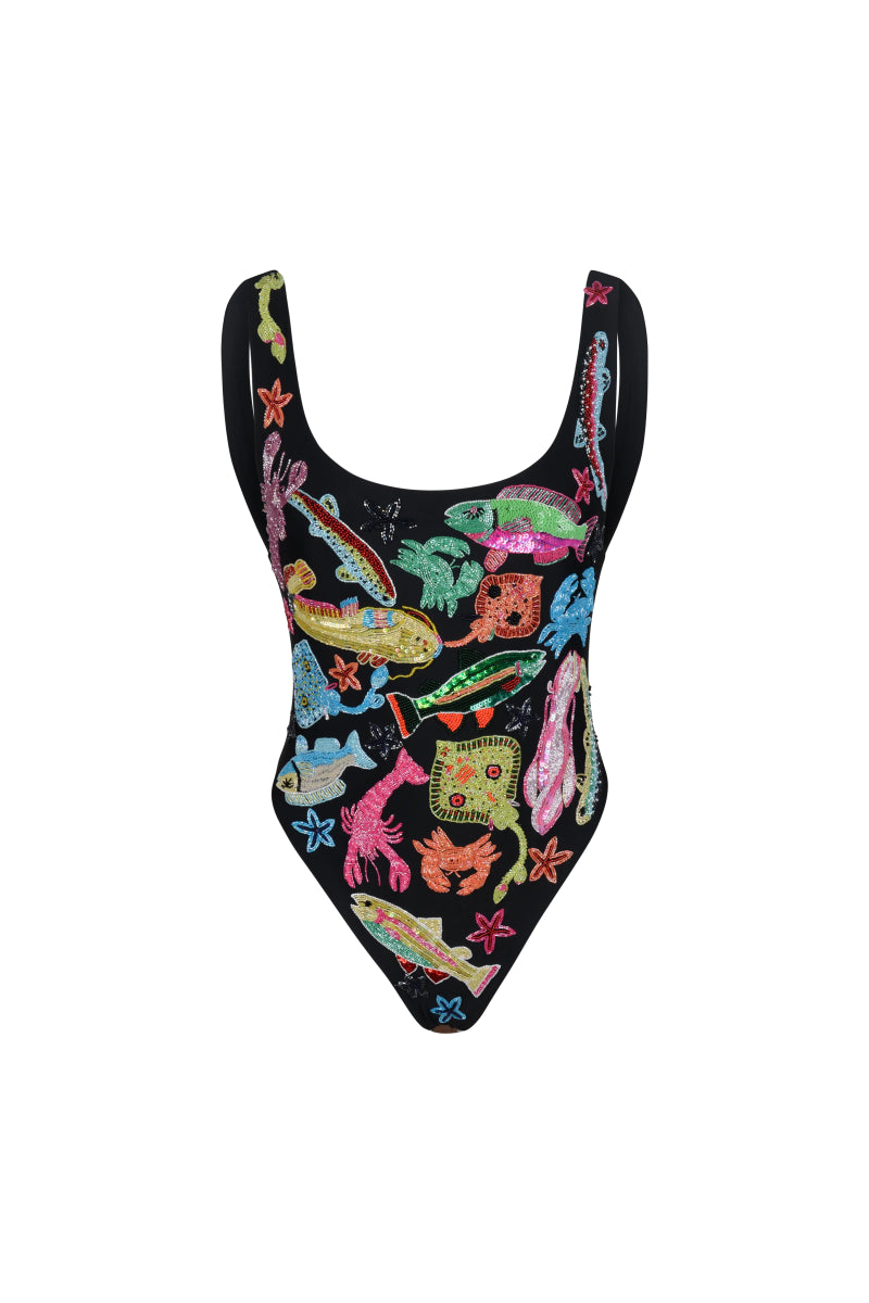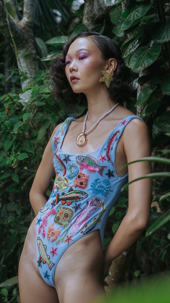 The Arizona Swimsuit is a luxury hand-beaded one-piece designed for women who love statement beachwear. Crafted in a crisp white base and embellished with colourful tropical motifs, each piece features artisanal beadwork inspired by coastal wildlife. The flattering high-leg cut, scoop neckline, and elegant low-back design make it perfect for any tropical vacation, pool party, or resort getaway. This designer swimwear fits true to size and adds a bold, handcrafted touch to your summer wardrobe.