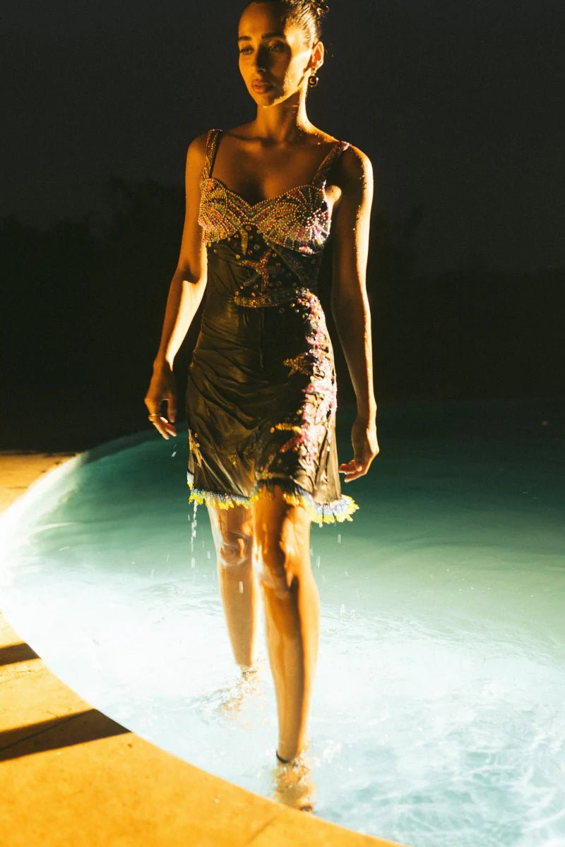 Introducing our new Crescent Shell Mini dress - hand adorned with intricate hand-beaded details