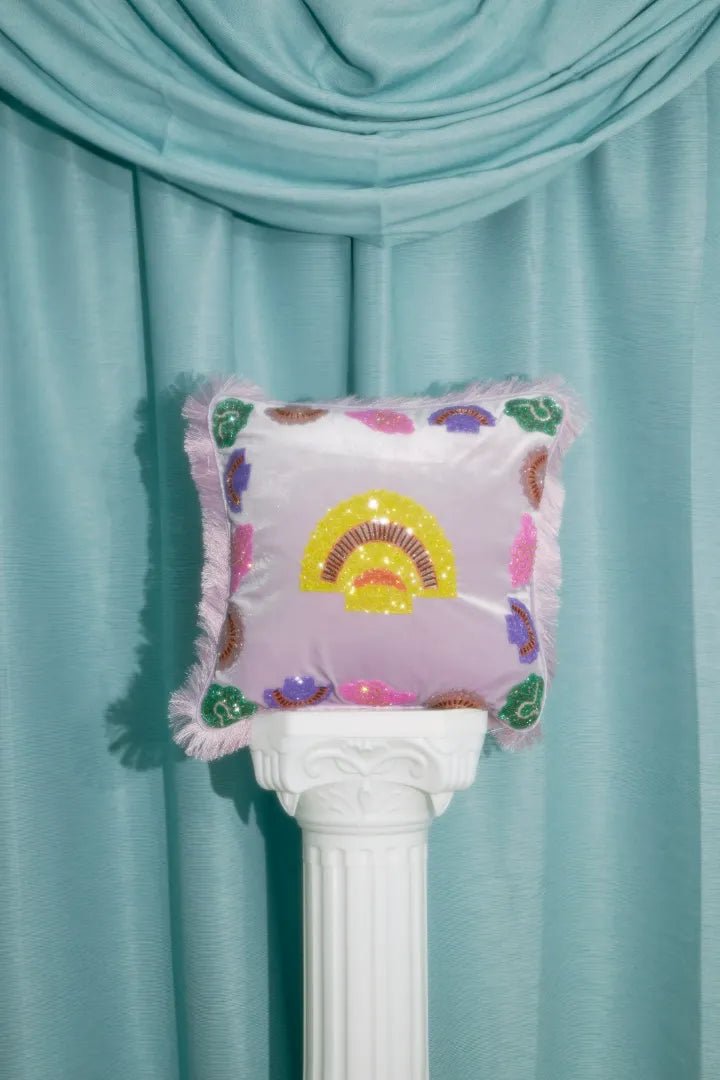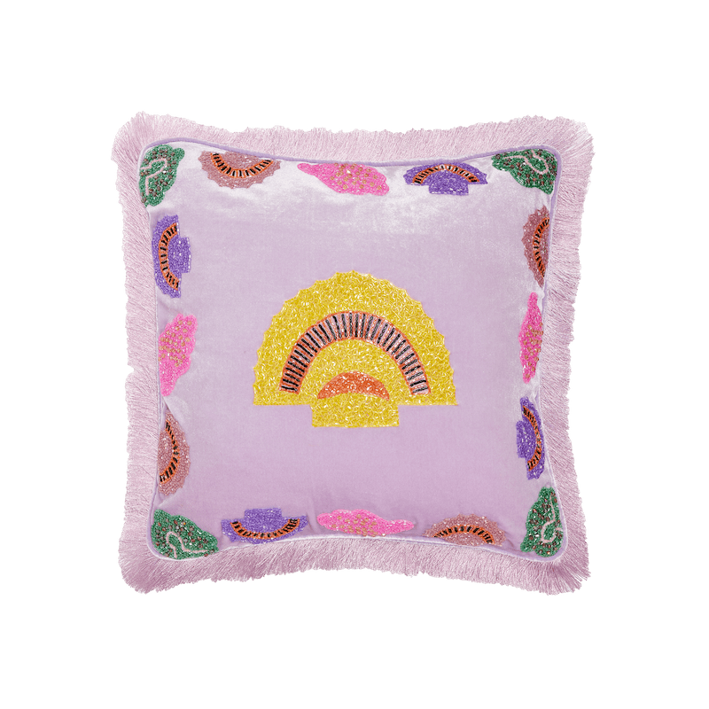 Beautiful seashells adorn this soft purple velvet cushion. Size - 16 x 16