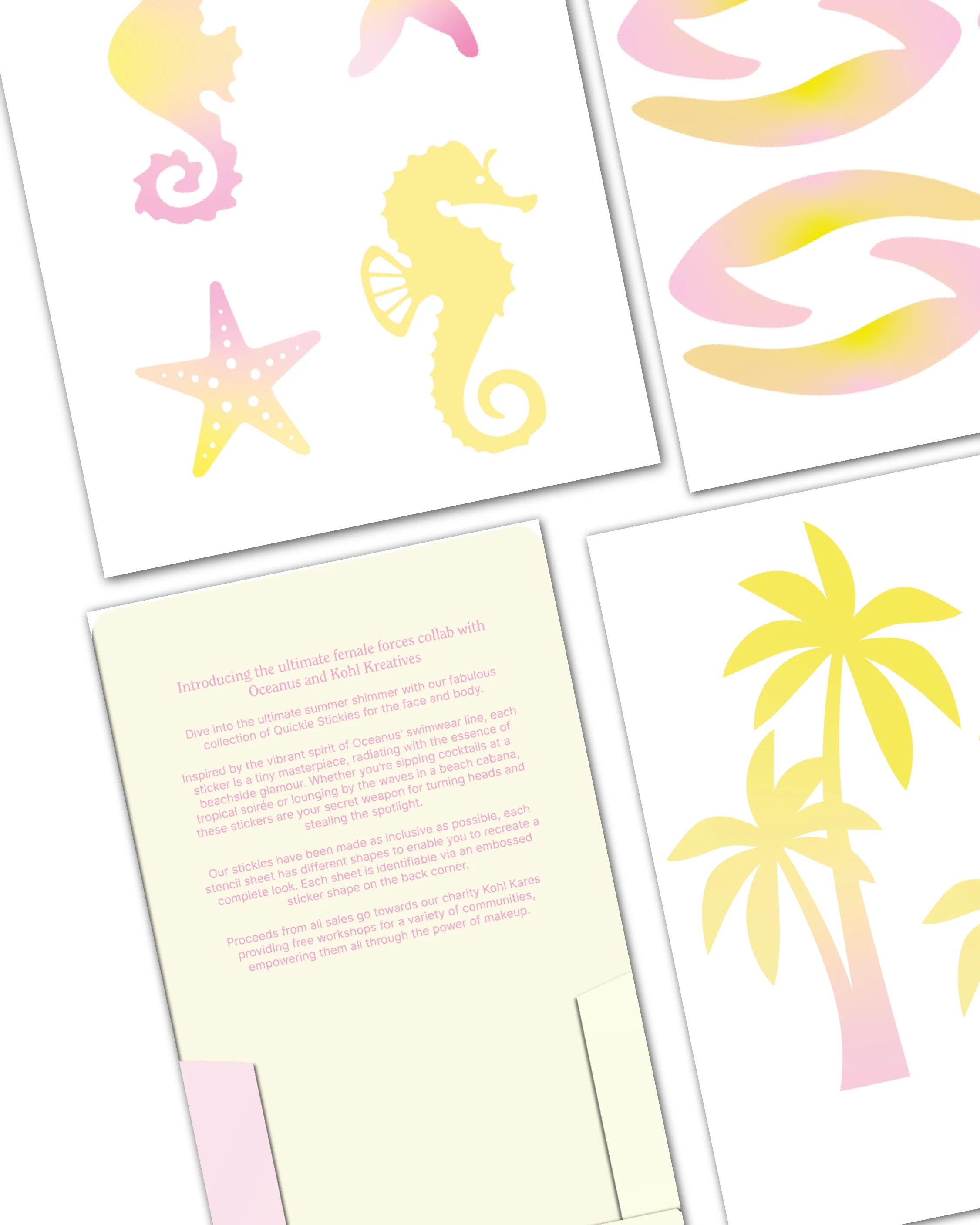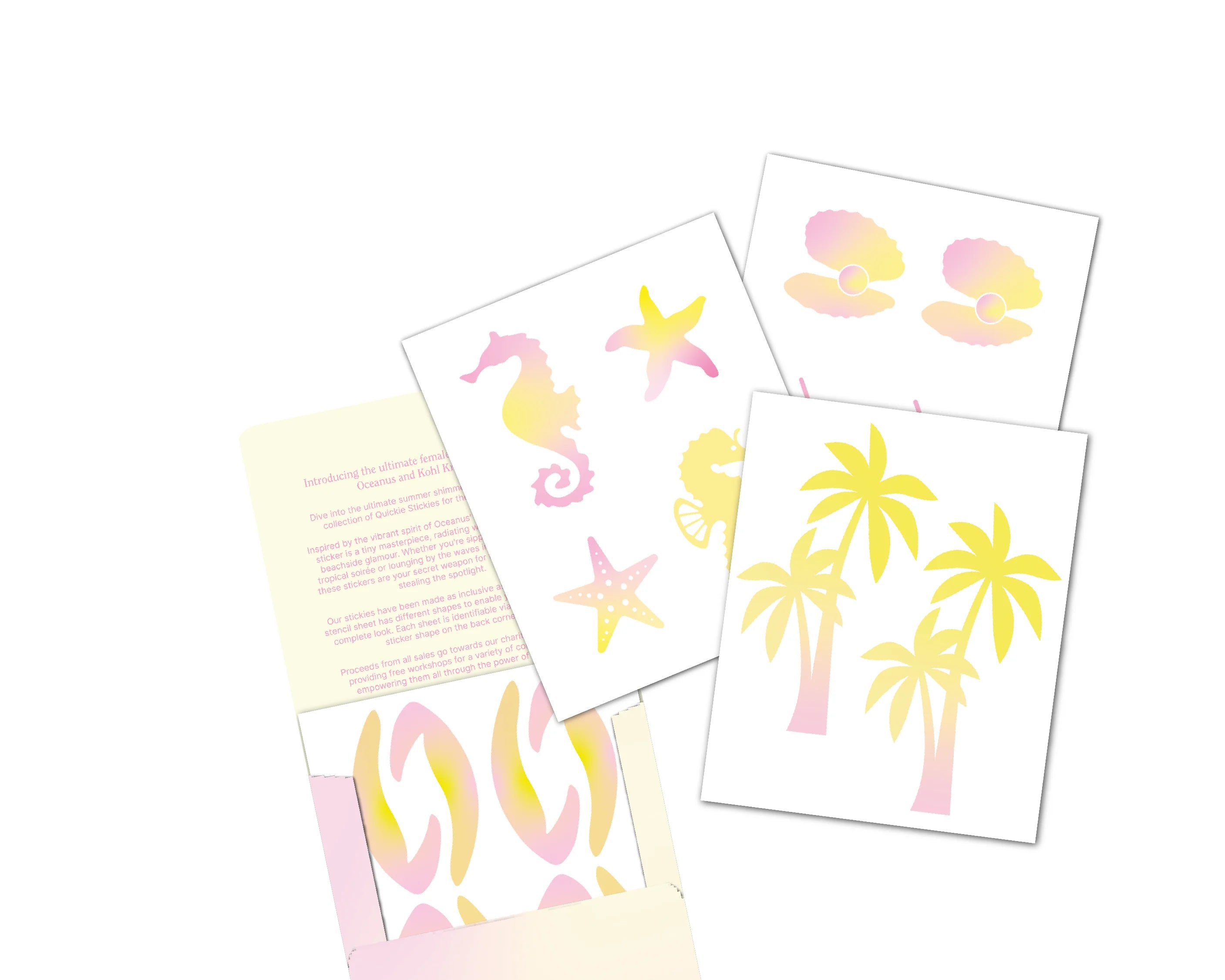 Inspired by the vibrant spirit of Oceanus' swimwear line, each sticker is a tiny masterpiece, radiating with the essence of beachside glamour. Whether you're sipping cocktails at a tropical soirée or lounging by the waves in a beach cabana, these stickers are your secret weapon for turning heads and stealing the spotlight.