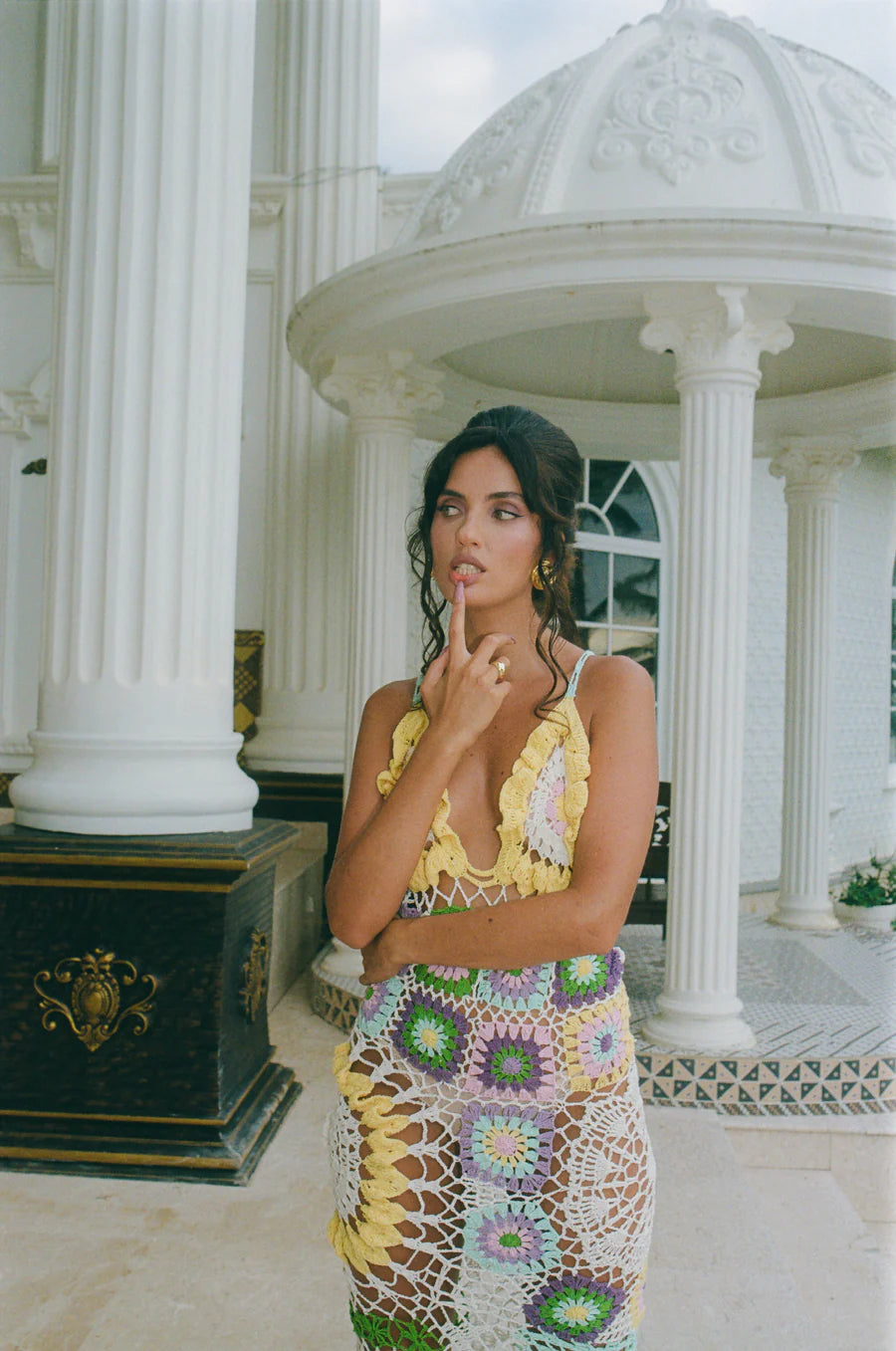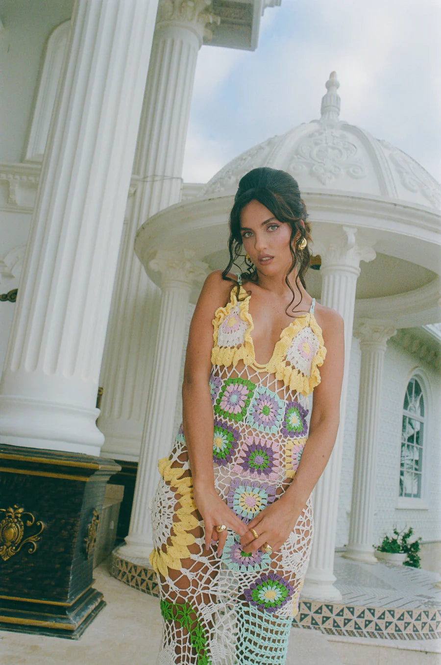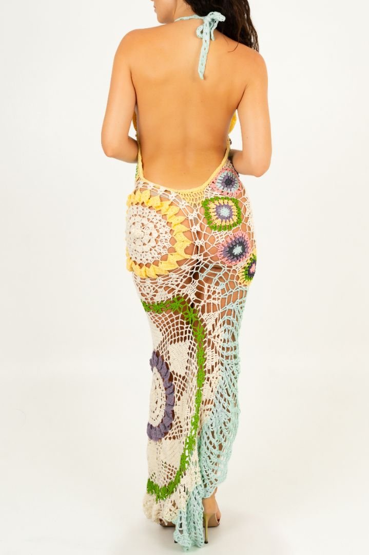 Octavia Crochet Party Dress Multi-Coloured