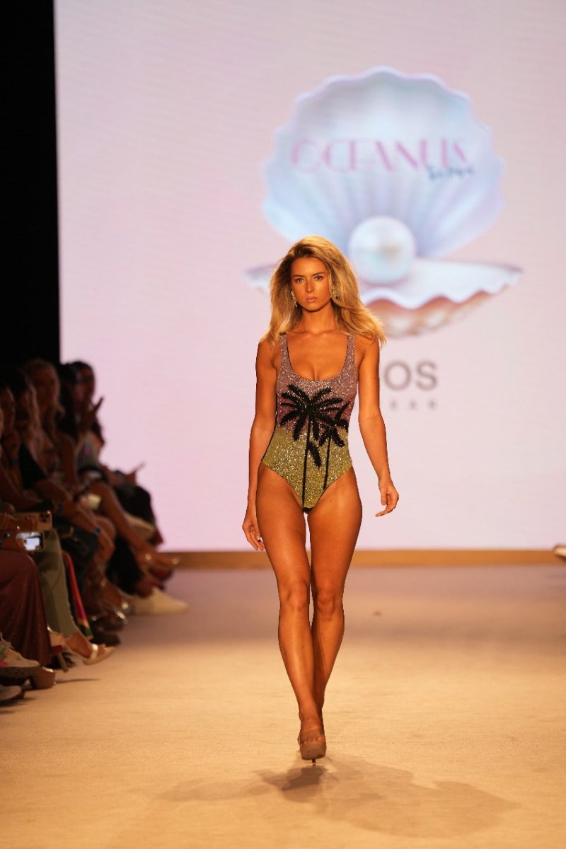 Palm Dusk Scoop Swimsuit Black Plam Tree